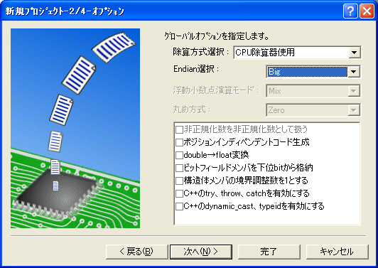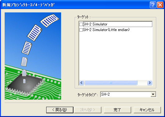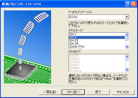 CPUの選択をSH-2とする以外はすべてデフォルトで問題ありません。