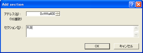最後に、R、Bセクションを 0xffffa400 番地から配置します。これでセクションのアドレス設定は完了です。